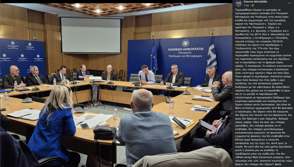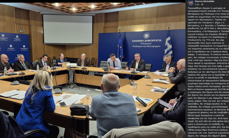 Σύσκεψη στο Υπουργείο Μεταφορών και Υποδομών για τα “στοιχειωμένα” έργα στη Χίο (αεροδρόμιο, Φράγμα Κόρης Γεφύρι κ.α.), 19 Ιανουαρίου 2026