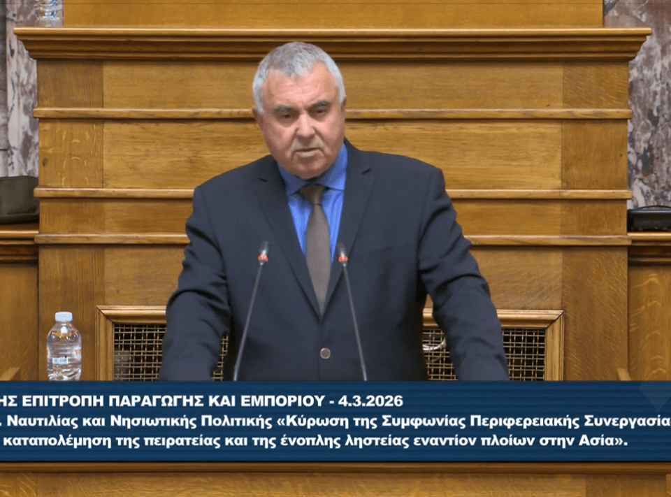 Εισηγητής στο Νομοσχέδιο Ναυτιλίας “Κύρωση της Συμφωνίας Περιφερειακής Συνεργασίας για την καταπολέμηση της πειρατείας και της ένοπλης ληστείας εναντίον πλοίων στην Ασία”, Επιτροπή Παραγωγής και Εμπορίου, 4 Μαρτίου 2026