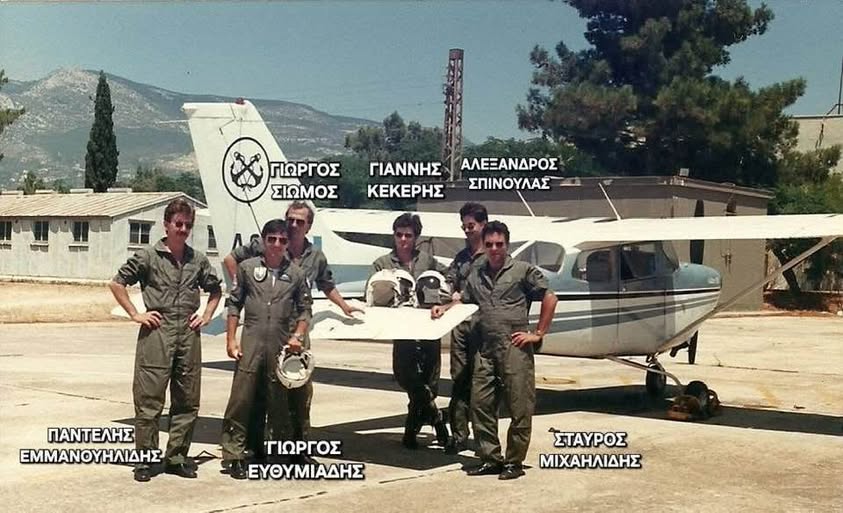 Τατόι 1987, Σχολή Ικάρων 360 Μοίρα Εκπαίδευσης. Εκπαίδευση πιλότων Αξιωματικών Λ.Σ. στην πίστα πριν την απογείωση με τους εκπαιδευτές Γ. Σιώμο, Γ. Ευθυμιάδη. Ευχαριστίες στον συνάδελφο Αλέξανδρο Σπίνουλα για τη φωτογραφία.